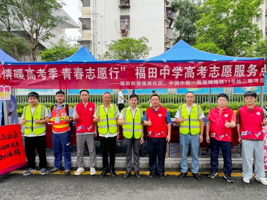深圳公司侨城东路北延项目组织党员青年开展“青年志愿行,爱心助高考”志愿服务活动,在考点外搭起帐篷,设立临时休息处,免费为考生和家长提供矿泉水、饮料、绿豆汤、防雨遮阳伞、考试用品、防蚊虫和应急药品等助考物资,并协助当地交管部门共同维持考场周边环境秩序,以细致、贴切的服务助考。