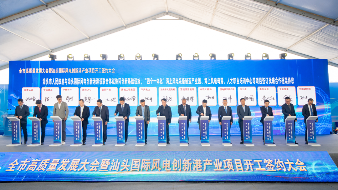 会上,汕头国际风电创新港建设联合体正式宣告成立,并与汕头市就协同创新基础设施、“四个一体化”海上风电装备制造产业园、海上风电母港、人才职业培训中心等签订战略合作框架协议。该联合体是由落户汕头的开发投资、装备制造、施工总承包和检测认证等龙头企业组成的产业联盟,是汕头国际风电创新港建设的主力军,未来将充分发挥资源、技术、产业发展等方面优势,推动汕头国际风电创新港加快建设。