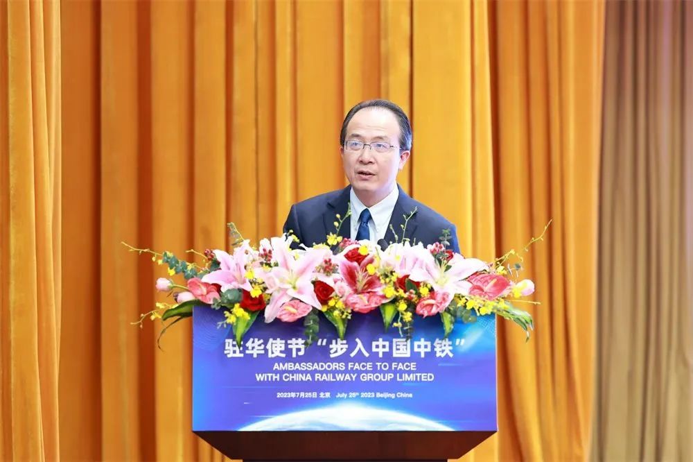 7月25日,由外交部主办的驻华使节“步入中国中铁”活动在京举行。来自70个驻华使馆和7个国际组织驻华代表机构的100余人出席本次活动,其中包括12位驻华大使、12位临时代办和1位国际组织驻华代表。