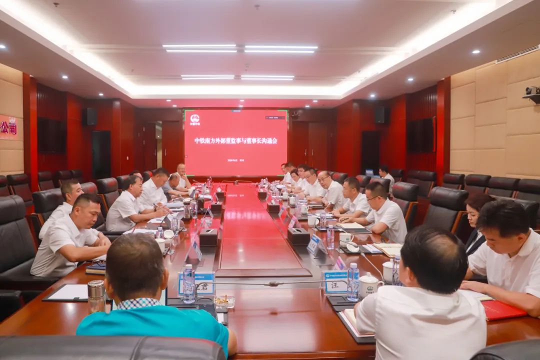 6月26日,中铁南方外部董事监事与董事长沟通会在集团本部召开。集团公司党委书记、董事长王伟,外部董事裴清宁、王喜军、孙宝良、程志强,监事会主席张亚君,董事、总经理、党委副书记李应战,职工董事、总会计师徐议成,公司在家领导班子成员及有关部门负责人参加会议。