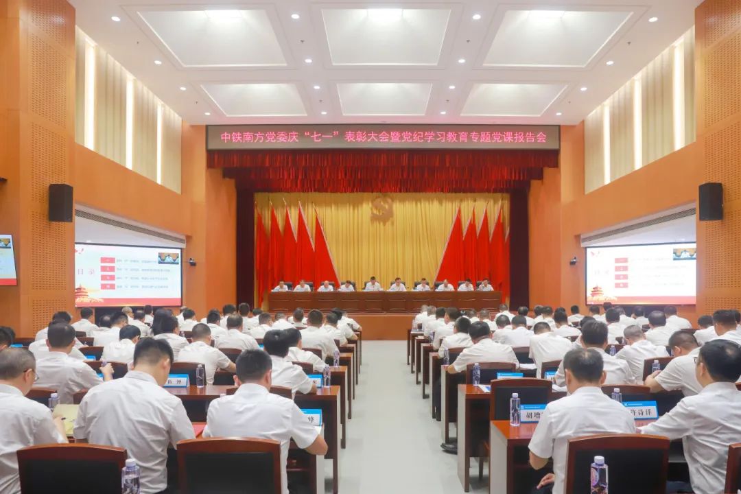 6月28日,在全党深入开展党纪学习教育之际,中铁南方党委召开庆“七一”表彰大会暨党纪学习教育专题党课报告会,热烈庆祝中国共产党成立103周年,重温入党誓词,表彰中铁南方优秀共产党员、优秀党务工作者、先进基层党组织,开展专题党课辅导,激励和动员全公司各级党组织和广大党员干部,凝心聚力、奋楫笃行,为加快打造中国中铁投资领域创新型领军企业不懈奋斗。