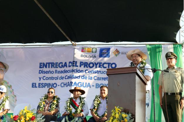 路易斯·阿尔塞总统在致辞中表示“Espino公路项目具有历史性意义,将有力加快玻利维亚东部区域的连接。感谢中国政府提供融资和技术支持,感谢中国企业运用智慧和科技修建高质量道路,希望该道路如200多年的印加古道一样,不断服务沿线民众生产生活,促进当地工业化发展。”