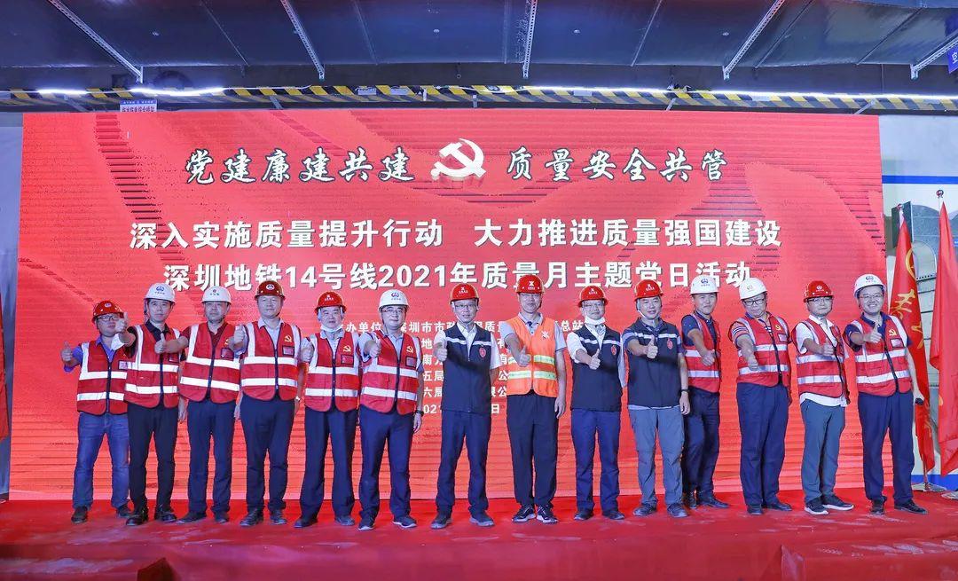 在全国“质量月”活动正如火如荼开展之际,9月23日,深圳市市政工程质量安全监督总站与深圳地铁14号线项目建设、监理、施工等单位组成的临时党支部将党建工作与项目建设深度融合,开展了“深入实施质量提升行动,大力推进质量强国建设”质量月主题党日活动,多措并举推进质量管理水平持续提升。来自深圳市市政站、深铁建设、中铁南方、中弘策、14号线各中铁参建单位约80人参加了此次主题党日活动。