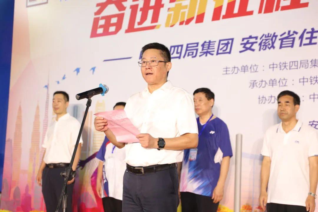 安徽省纪委监委驻省住建厅纪检监察组组长、住建厅党组成员刘长华,中铁四局集团党委副书记、工会主席邵刚,安徽省住建厅建设建材工会(厅文明办)主任 、一级调研员程德旺,安徽省住建厅建设建材工会四级调研员邱亮,中铁四局集团工程材料公司党委书记黄玉华,中铁四局集团工会生产保护部部长、体协秘书长占苏龙,中铁四局集团工程材料公司党委副书记、纪委书记、工会主席胡士勇等领导出席开幕式。中铁四局工会副主席陈海如主持开幕式。