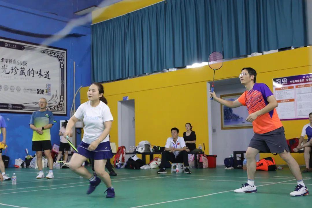 本次比赛包括男子双打、女子双打、混合双打三个比赛项目。比赛开始前,各参赛队队员就投入到热身活动。