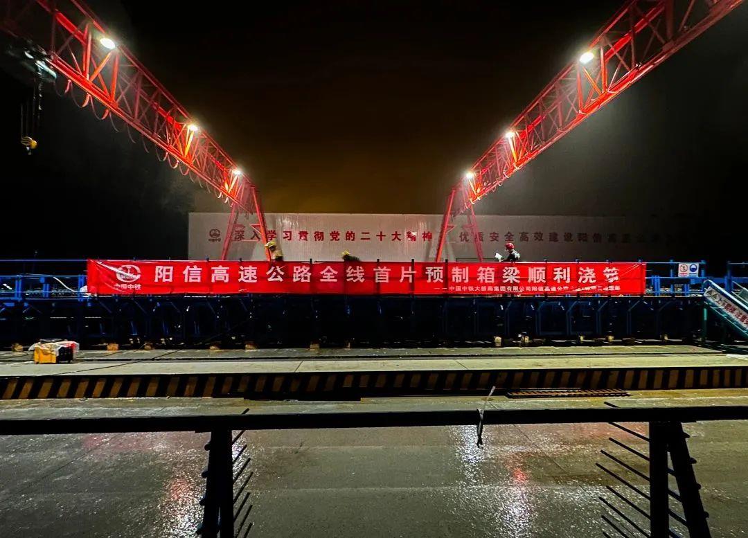 3月31日,由中国中铁、中铁南方联合体投资建设,中铁大桥局承建的阳信高速公路项目首片预制箱梁顺利完成浇筑,标志着该项目土建1标逐步转入上部结构施工阶段。