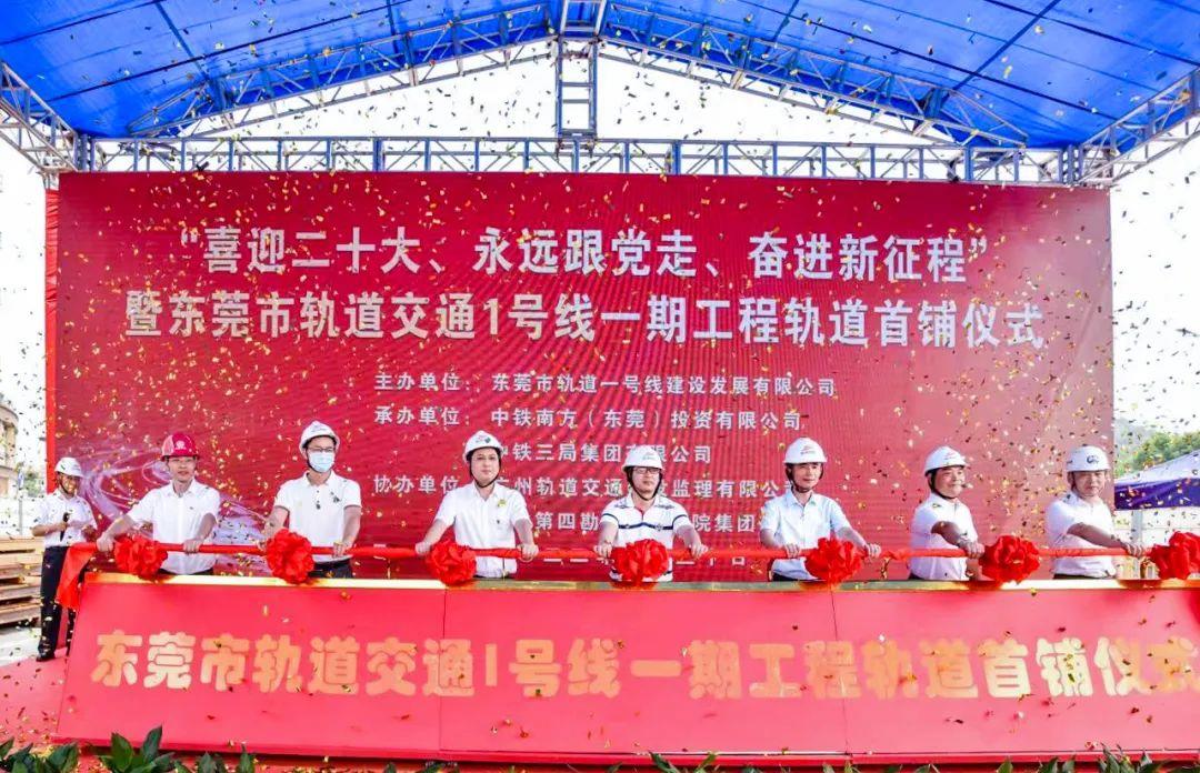 东莞轨道交通1号线是目前东莞城市轨道交通单条线路里程最长的项目,全长57.46千米,共设车站25座,其中13个换乘站。全线轨道工程划分为两个标段,此次承担首铺是轨道1标段,从望洪站至大岭山北站,全长57.127千米铺轨工程,铺设道岔31组。