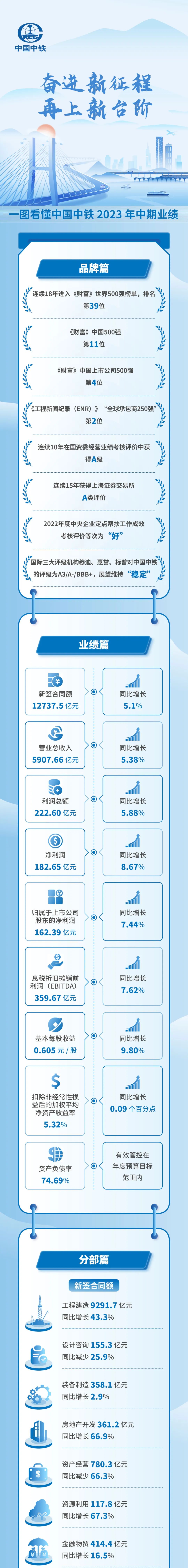 再上台阶!中国中铁2023年半年报发布