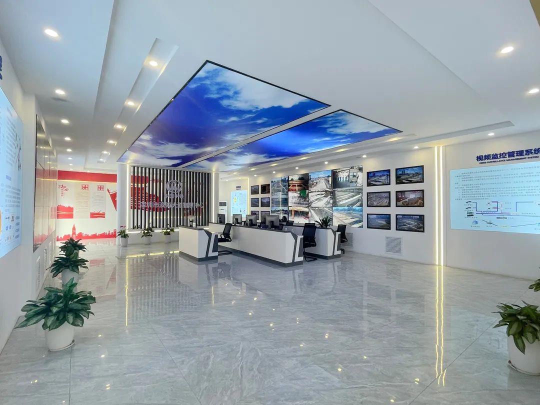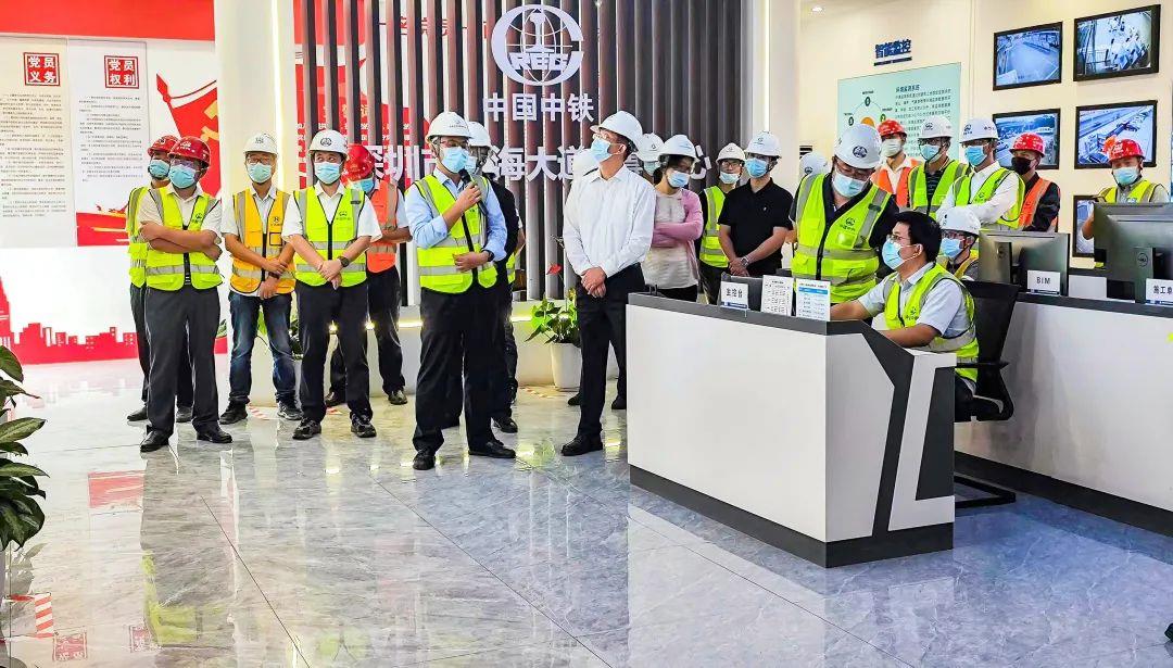 观摩团一行首先来到项目智慧中心,详细了解了项目大型机械设备管控、疫情防控、自动化检测、BIM信息化建设、安全风险管控平台运行及“五小四新”技术应用等安全文明施工特色做法和先进管理经验。