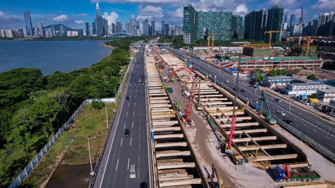 深圳滨海大道交通综合改造工程西接沙河东立交,东至广深高速公路,全长约5.95千米,其中下沉隧道段1.56千米,全线按主路双向8车道+辅路双向6车道进行改造。该项目建成后,地面连接深圳湾公园,地下行车,形成“地面+地下”立体交通,将极大完善城市干线路网,有效缓解超级总部段的交通瓶颈,同时消除滨海大道对深圳湾景观带的分割,促进城市建筑与滨海景观的融合,为深圳湾总部基地提供更高质量的公共空间,提升深圳城市客厅品质,助力粤港澳大湾区交通基础设施高质量发展和深圳打造“交通强国”城市范例。