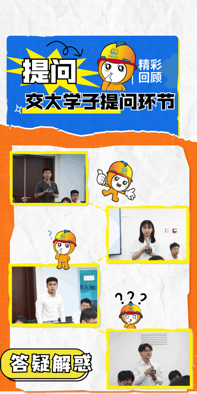 交流环节西安交通大学的学生们就自己学习的专业研究领域、工程行业现状和企业用人机制等多个方面向与会的中铁一局总工、专家进行了提问,中铁一局与会总工、专家、校友一一为学生们进行了解答,座谈交流过程严肃活泼。
