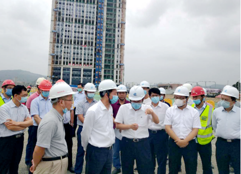 5月19日上午,福建省副省长李德金、省发改委、交通运输厅及福州市政府有关负责人一行检查调研福州地铁6号线2标车辆段工程,福州地铁集团有限公司董事长黄朝光,副总经理王升,中铁南方副总经理张国亮,福州指挥部副指挥长兼安全总监、福州地铁6号线2标项目经理康林及中铁三局建安公司相关人员等陪同。