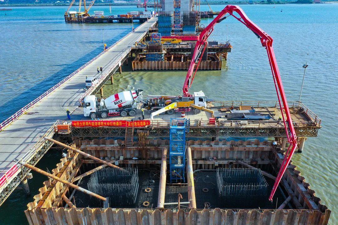 8月24日晚上21时,经过28个小时的连续浇筑,由中铁南方投资建设、中铁大桥局承建的汕头牛田洋特大桥最后一个承台——18号墩承台顺利浇筑完成,标志着大桥水下基础工作全部完成,大桥建设取得突破性进展。