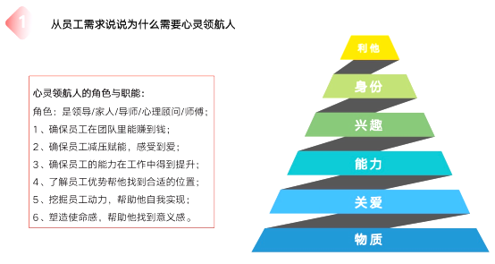 钟南山院士说:“健康的一半是心理健康,疾病的一半是心理疾病”。为了员工的身体健康、心理健康、人际沟通,以及确保公司的安全生产。导师们不仅需要关心青年员工的饮食起居,还要协助他们团队融入、能力提升、自我实现并实现社会价值。心灵领航人使命重大,任重道远。