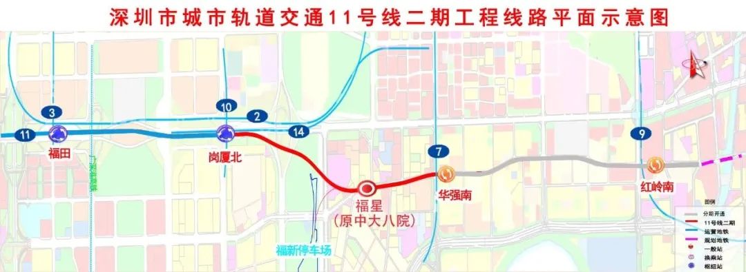 此次开通后,岗厦北站发车间隔直接缩短一半,将极大提高11号线折返效率,有效缓解岗厦北站客流压力。市民可通过福星站直达中大八院,进一步提高就医的便利性;同时在华强南站实现与7号线换乘,在岗厦北站实现与1号线、2号线、10号线和14号高效联动,完善轨道网络化运营,实现福田区与各城区互联互通,全面激发湾区核心城市活力,为市民提供更加便捷的出行服务。