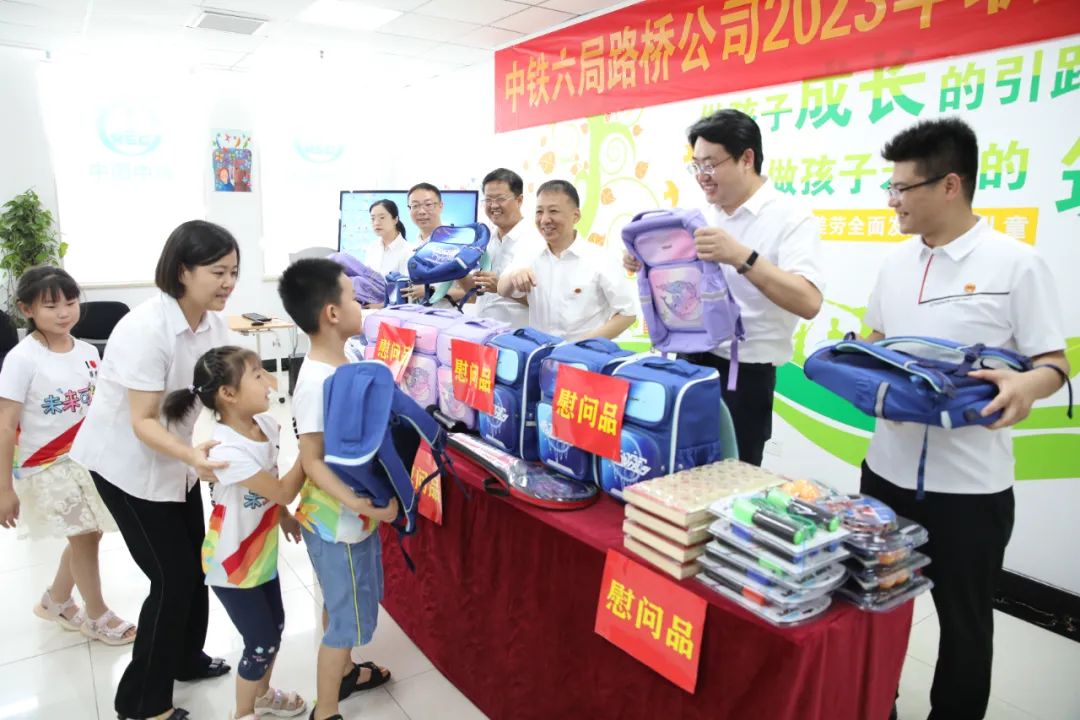中铁六局工会组织探望路桥公司暑期托管班的职工子女,并为托管班的孩子们送来了书包、文具等学习用品。为解决职工子女寒暑期看管难,路桥公司本着为职工办实事、解难事为初衷,自2021年8月开始举办了4期职工子女寒暑期托管班,在办班实践中,托管服务对象达88人,2022年被评为“湖南省直单位爱心托管班”。