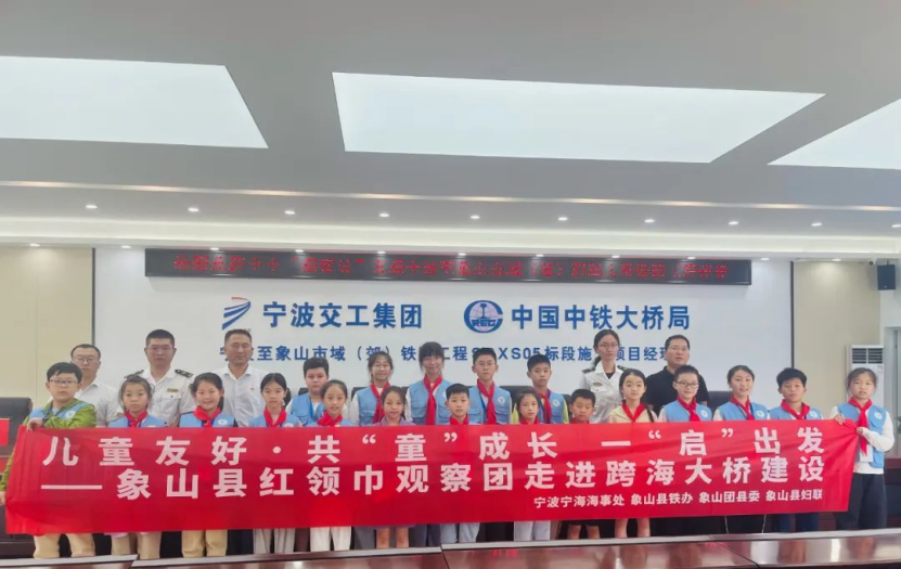 中铁大桥局四公司宁象5标项目部工会与宁海海事处,象山县铁办、 县团委、县妇联联合开展“小小观察员,一米线看世界,当好城市建设儿童观察员”主题活动。项目部向“观察员”学生们介绍了工程施工整体概况并演示了一座桥梁的建设过程。宁海海事处为师生们普及了“防溺水六不四牢记”水上交通安全知识和求救自救方法,让大家探索知识的同时提高安全防范意识。