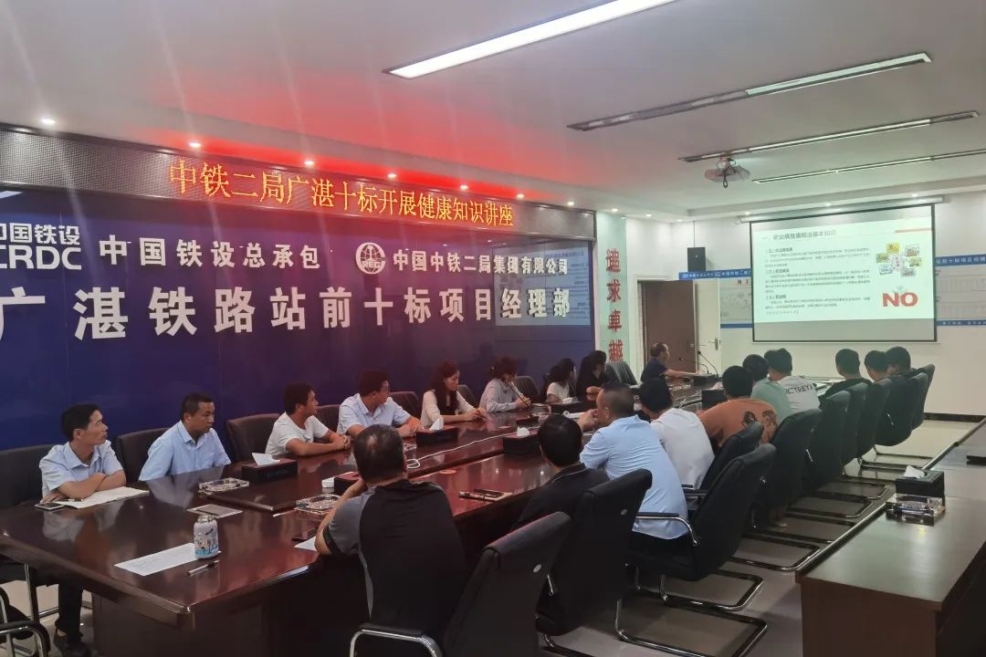 9月26日,中铁二局广湛10标项目工会邀请湛江南油医院健康监护中心副主任邓海勇到项目部会议室举行健康知识讲座,旨在提高职工的职业病防治意识。
