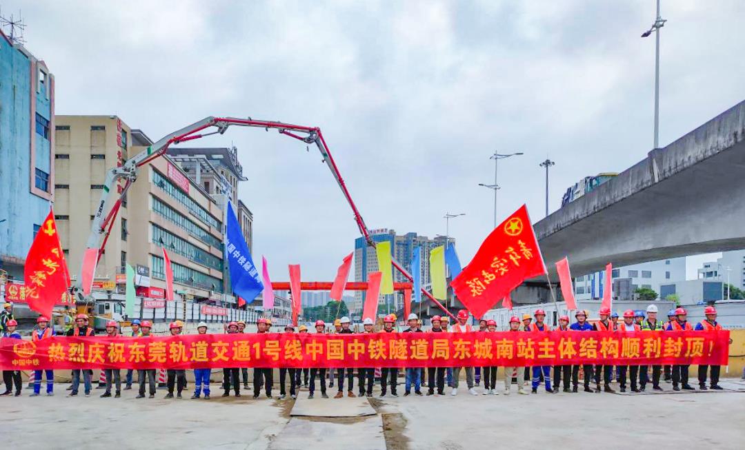 10月23日,随着车站最后一块顶板混凝土完成浇筑,东莞地铁1号线东城南站实现主体结构封顶,标志着中国中铁东莞轨道交通1号线开展“决战决胜四季度”劳动竞赛活动以来首战取得重大施工生产节点胜利。