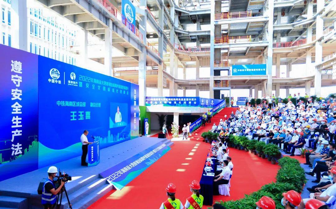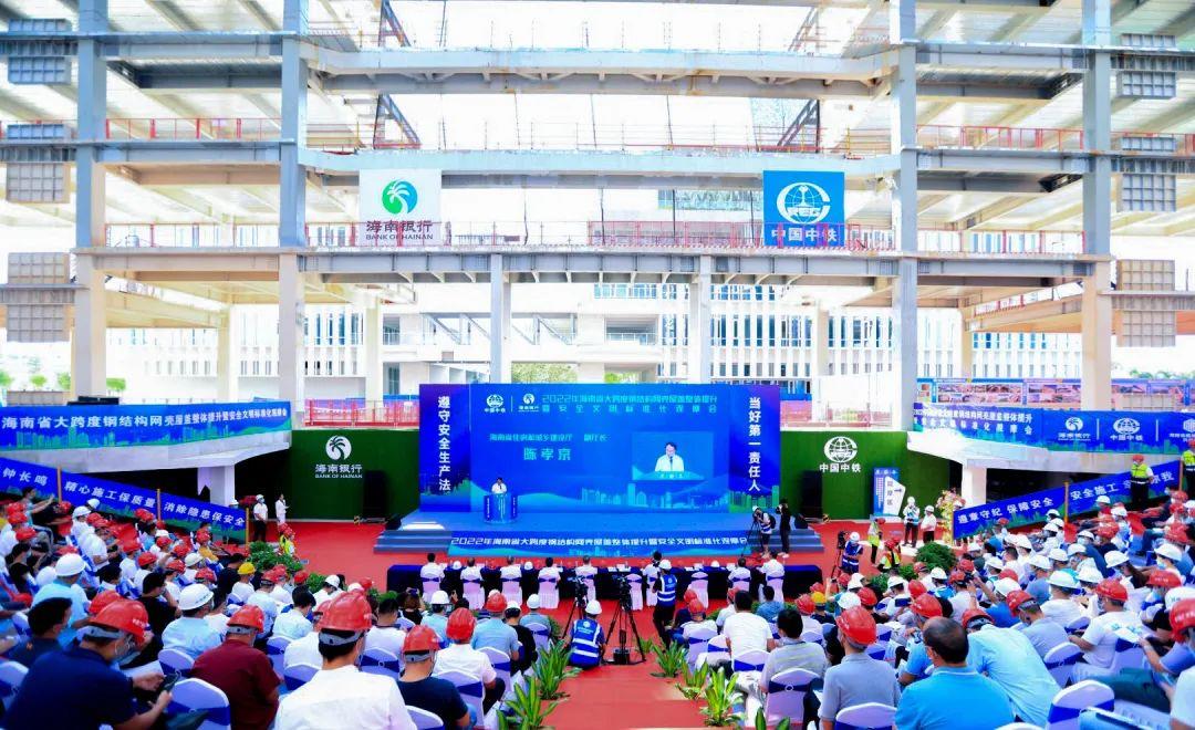 7月29日,由海南省住房和城乡建设厅主办,海南银行、中铁南方、中铁广州局共同承办的“2022年海南省大跨度钢结构网壳屋盖整体提升暨安全文明标准化观摩会”在海口江东新区海南银行总部大楼项目现场举办。