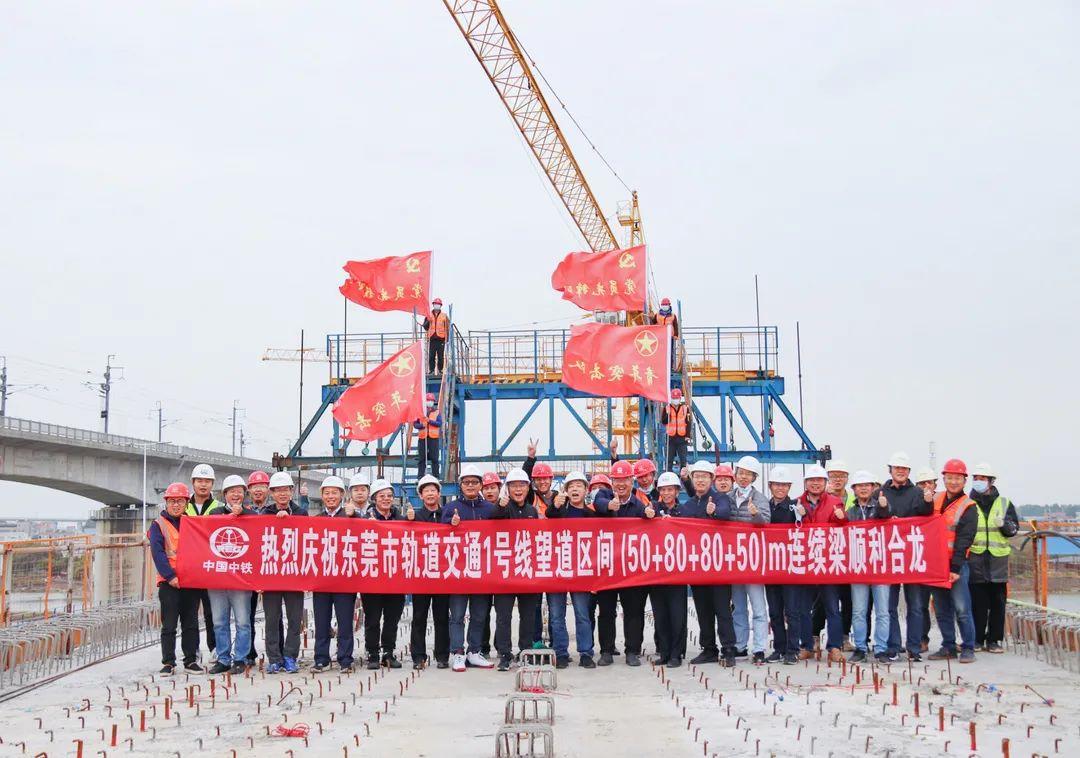 东莞市轨道交通1号线高架区间赤窖口河大跨度连续箱梁顺利合龙