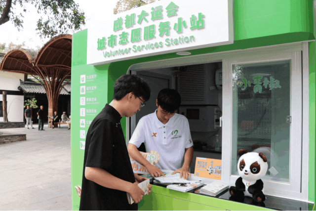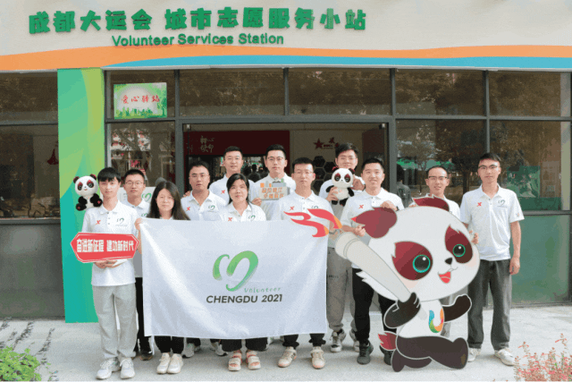 志愿团队一行在重要交通路口设置了7名交通协管员,协助交警指挥交通、指引行人安全过马路,确保来往车辆畅通;选派了20余名英语口语能力强、服务能力强的青年员工作为大运会志愿者,通过培训后在锦江区净居寺站、东门市井站、东湖公园站三个城市小站为来往的市民及游客提供便民咨询、赛事推广、城市宣传等城市志愿服务。
