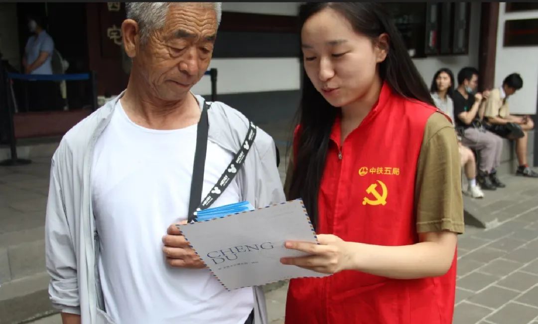 大运会期间,中铁二局装修公司成都地铁联合团支部与成都市少城街道机关党委、少城街道新时代文明实践所组织开展“爱成都 迎大运 共筑美好梦想”志愿服务活动。