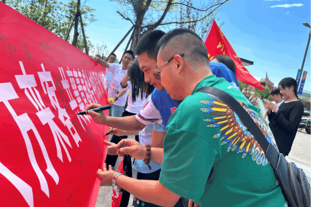 活动现场,志愿者们化身“小铁匠”,为来自全世界的游客朋友和市民提供赛事咨询、城市宣传、便民服务、消防安全基础常识、应急事件处理知识等12项志愿服务,邀请游客朋友和“小铁匠”一起为大运会加油,在大运会场馆外打卡拍照留念,并在“喜迎八方来客 共襄青春盛会 中铁八局开路先锋志愿者护航大运会”横幅上写下大家对大运会的祝福语。此外,志愿者们还给为大运会护航的保安大叔、外卖小哥、保洁阿姨们送上了小铁匠作为留念。