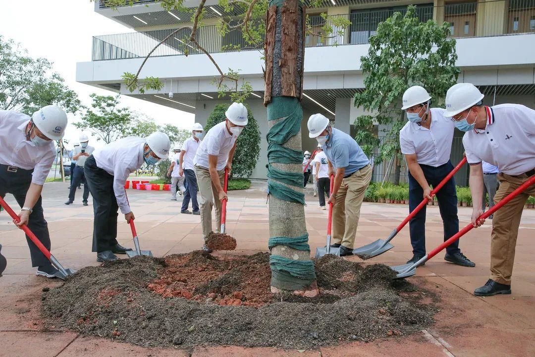 梁振英一行在施工现场听取了黄晓峰同志对项目建设推进情况的汇报,实地查看了教学楼、体育馆、运动场、宿舍楼、食堂等场所,体验了学生在校学习生活感受,并在港人子弟学校门口与参建各方共同种下了两棵寓意深厚的铁冬青。