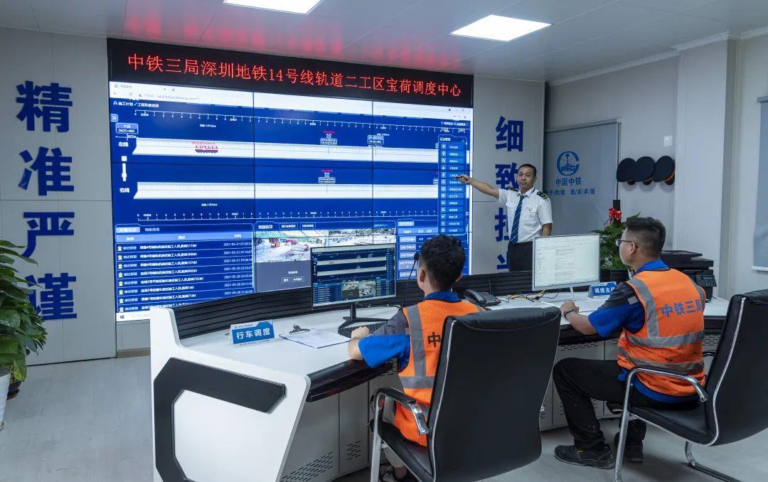 在地铁铺轨施工中,普遍存在隧道内现场施工的相关信息无法实时回传到调度指挥室;照明亮度不足,可视距离短;隧道内通道狭小,车辆、人员穿插交汇,行车安全有隐患;多家施工单位同时交叉作业,运输干扰大等问题。为强化轨行区安全及调度管理,建设者们认真总结以往轨行区施工及运输管理经验教训,结合站后工程施工特点,加大信息化管理技术研发,建立基于5G专网与三维定位的轨行区行车调度系统,涵盖了视频监视、应急广播、通信、网络、实时定位、智能防撞、中央监控、作业电子化管控、专线UPS供电等模块,构建了深圳地铁14号线轨行区安全智能防护与数字化管理平台,具有线路巡检、人员定位、视频监控、机车监控等功能,实现了“技控、技防”代替传统“人控、人防”,使轨行区管理更加可视化、智能化、高效化。