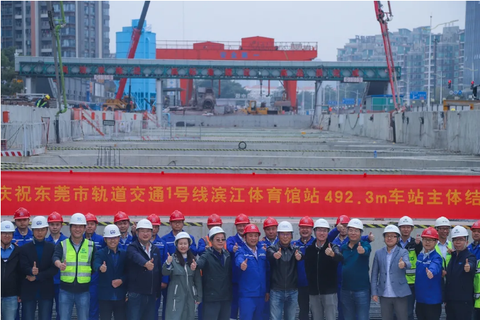 12月25日,随着车站最后一块混凝土成功浇筑,由中国中铁以PPP合作模式投资建设、中国中铁五局承建的东莞市轨道交通1号线滨江体育馆站顺利实现主体结构封顶,成为东莞市轨道交通1号线首批封顶的地下车站。