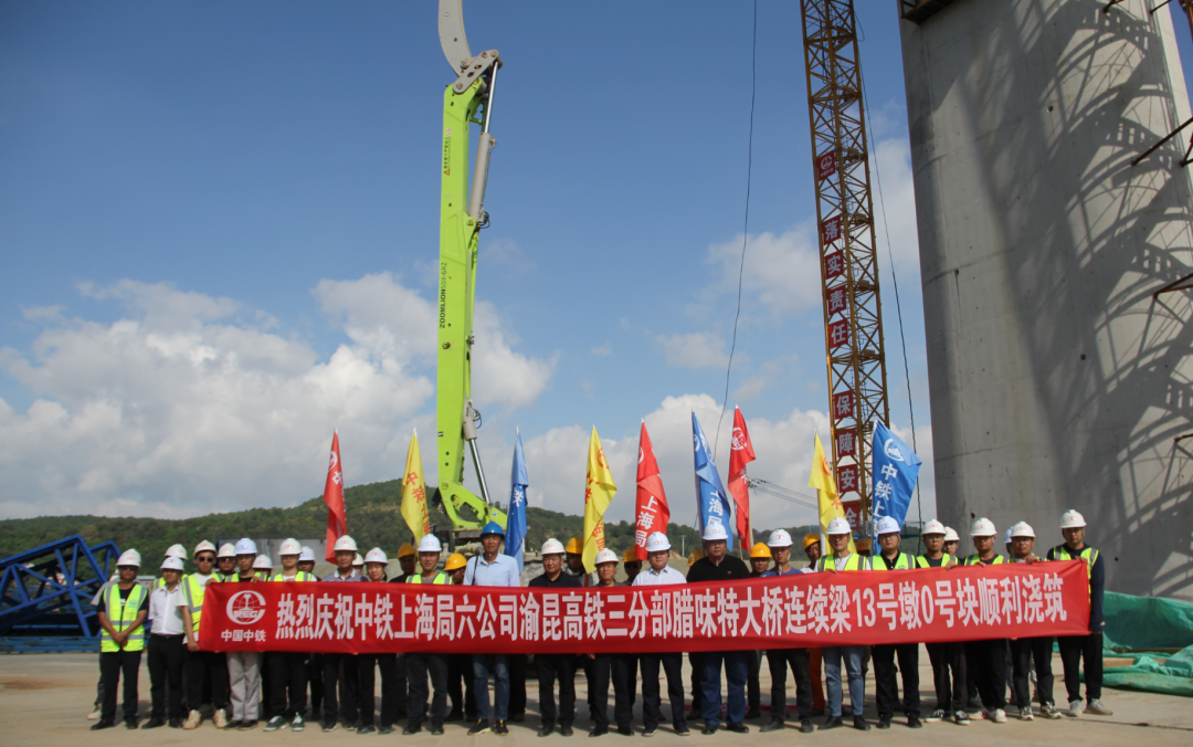 渝昆高铁云贵段站前七标项目三分部腊味特大桥连续梁13号墩0号块顺利浇筑