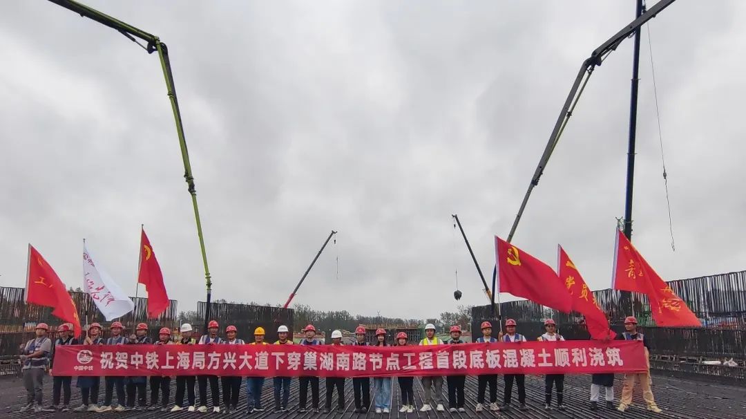 9月14日,中铁上海局三公司承建的方兴大道下穿巢湖南路节点工程项目首块底板浇筑顺利完成。