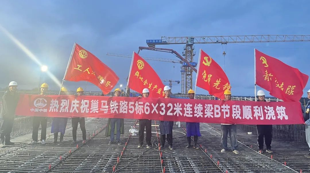 9月13日,巢马城际铁路CMSG-5标6x32米连续梁B节段混凝土开始浇筑,为巢马城际铁路江北段下一步施工打下坚实基础。