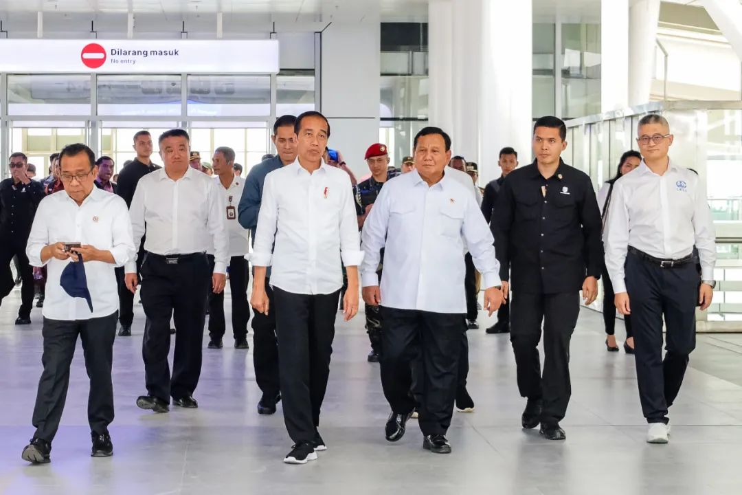 ▲ 图为佐科总统在中方建设者陪同下考察德卡鲁尔车站