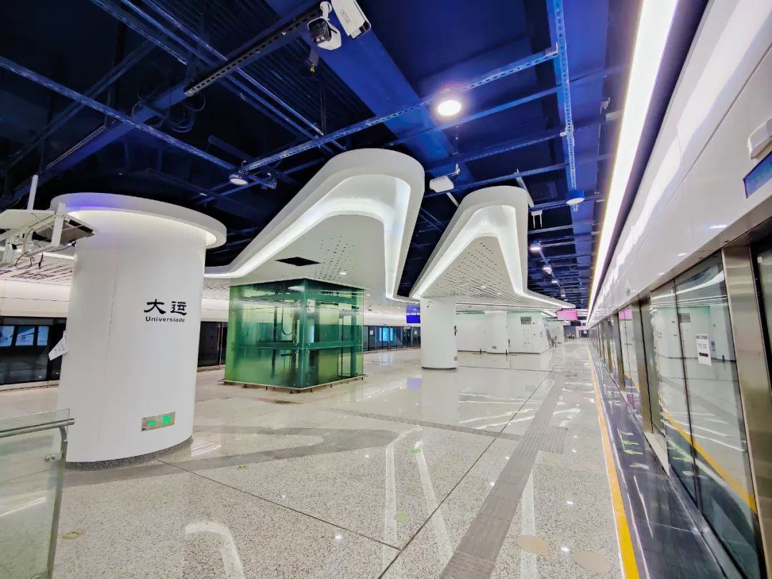 侧式站台加宽是极大提高3号线大运站换乘能力的一项技术。通过改换的站台,乘客可实现在3号线中间岛式站台上车、两边侧式站台下车,再通过交通核实现与14、16号线及深大城际线的便捷换乘。因为3号线为既有运营线,侧式站台加宽施工作业只能在凌晨地铁停运后的“天窗点”期间进行,必须“争分夺秒”。为高效推进施工,建设者们提前开展了“营运岛式高架地铁站房、平台扩建施工”技术研究,通过采用东西侧平行、单侧流水施工的方式,克服了楼承板施工界限控制难、全高站台门预埋件安装界限控制难等技术问题,圆满完成了既有3号线新建侧式站台加宽钢结构吊装、楼承板安装等工作。