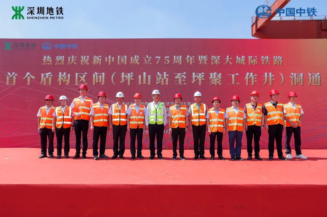 在新中国成立75周年来临之际,9月30日上午,由中铁南方主办、中铁七局承办的深大城际2标热烈庆祝新中国成立75周年暨首个盾构区间(坪山站-坪聚工作井)洞通仪式在该项目坪聚工作井施工现场顺利举行,以实干实绩献礼新中国75周年华诞。