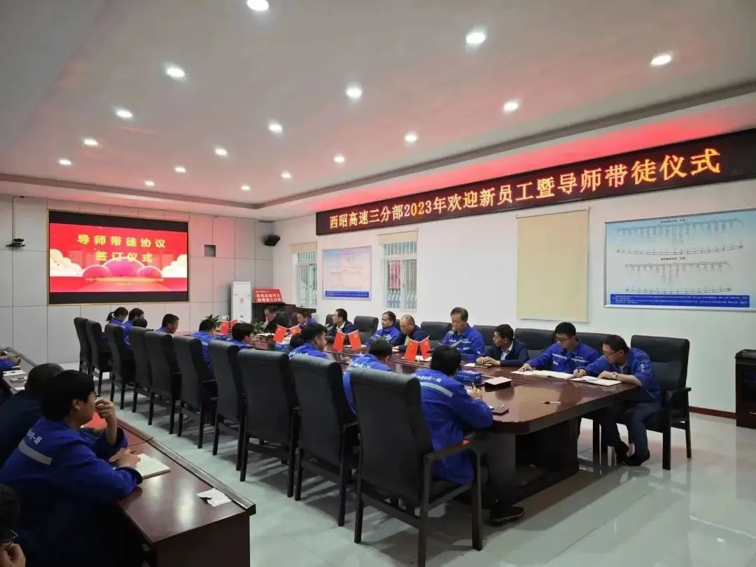 中铁三局二公司 、电务公司、华东公司组织开展“导师带徒”相关工作,与新员工签订协议,并进行一对一指导,促进青年员工的成长成才。师父们将自己掌握的知识传授给新入职员工们,相信他们能够在自身岗位上茁壮成长,独当一面。