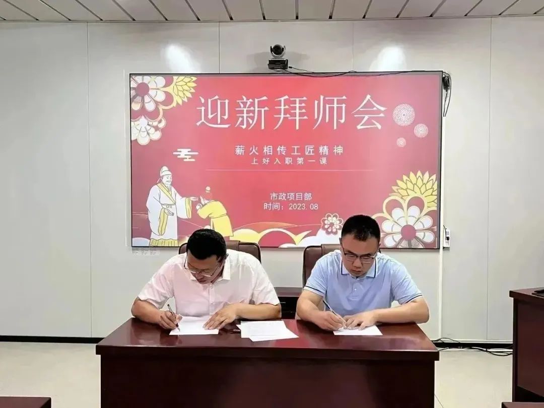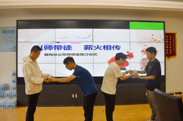 中铁六局天津公司通过行“拜师礼”、敬“尊师茶”、递“拜师贴”、签“师徒协议”等方式,结合“导师赠言”“导师赠书”“导师回礼”等双向奔赴行动,在全公司营造了浓厚的匠心传承文化氛围,引导新入职员工立足岗位、扎根基层、虚心向学,在双导师的指引和带领下,奋楫扬鞭,早日成才。