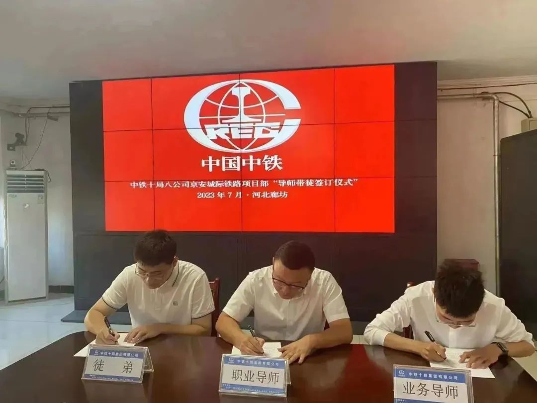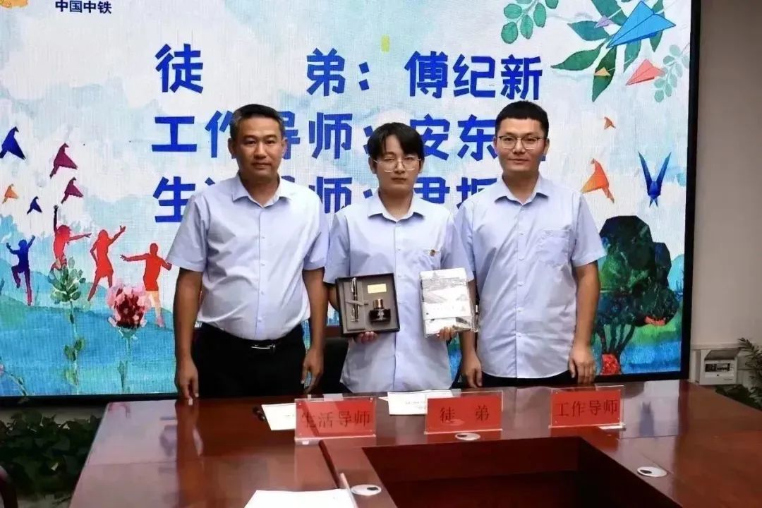 中铁上海局一公司、四公司立足实际,大胆实践,创新传统“导师带徒”模式,着力打造新型青年人才培养“阶梯工程”,让“导师带徒”这一法宝焕发新的生命和活力,结对师徒在协议书上郑重签下姓名,青年志愿者引导职场“萌新”向导师鞠躬拜师、敬上热茶,导师回赠亲笔写下成长寄语的笔记本,鼓励新员工立足岗位成长成才。
