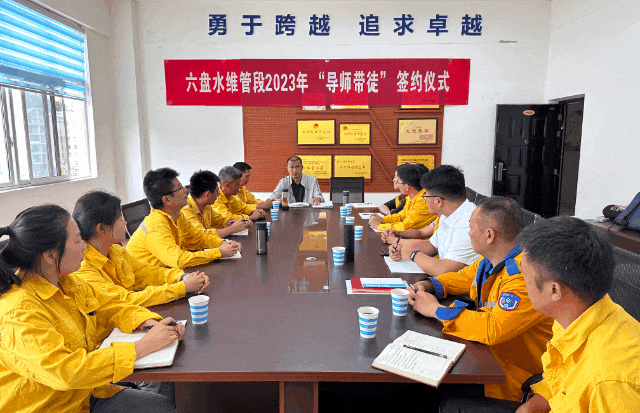 中铁一局四公司组织开展2023年迎新会及导师带徒签约仪式。签约仪式上,项目前辈分享工作经验,各导师介绍培养计划和带徒措施,新员工表示,加强学习,提升业务水平,早日成长成才。活动最后,师徒相继填写完成“导师带徒”合同,徒弟向师父敬拜师茶,师父对徒弟多了一份责任、一份承诺,徒弟对师父多了一份敬意、一份期许。