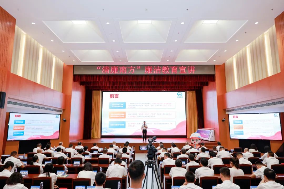 在7月8日企业廉洁文化理念体系发布会后,结合当前正在开展的深入贯彻中央八项规定精神学习教育,3名“清廉南方”宣讲员分别以《算好七笔账,走好人生路,建好廉洁路》《拒腐防贪念,廉心守财责》《深入贯彻中央八项规定精神,锻炼过硬纪律作风,护航企业高质量发展》为题,以“理论宣讲+案件剖析+纪法解读”的形式,为广大党员干部带来了一堂生动、直观、形象的廉洁教育课,切实把“写在纸上的要求”“看在眼里的教训”变成“刻在心底的警醒”,全体党员干部的心灵受到强烈震动,思想得到进一步洗礼。