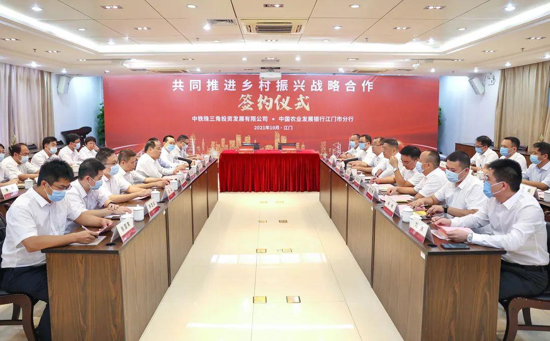 10月13日,中铁珠三角投资发展有限公司(以下简称“中铁珠三角公司”)与中国农业发展银行江门分行举行座谈会并签署战略合作协议。双方将充分发挥各自优势,携手共促乡村振兴、产业发展和项目建设,深化金融服务合作,实现互惠共赢。