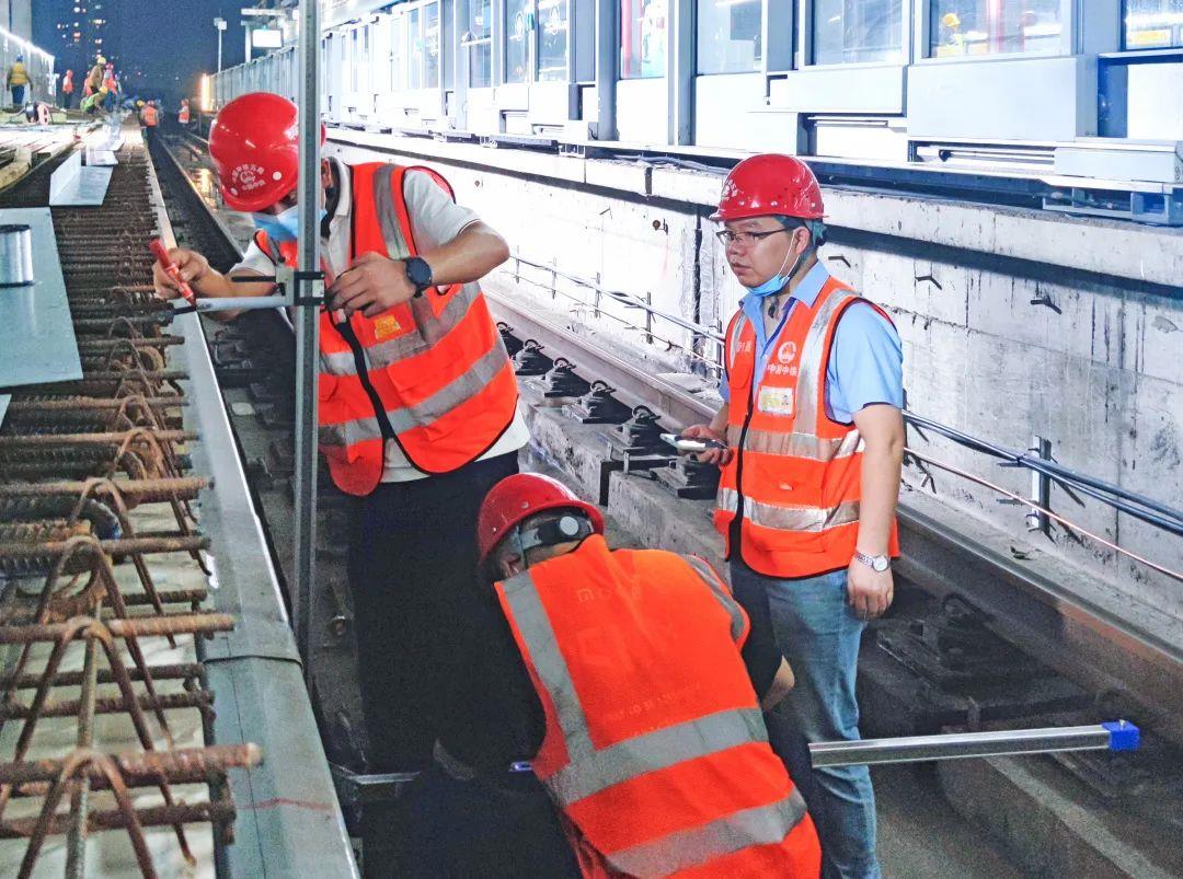 侧式站台加宽施工时间紧、任务重、要求高,所有作业只能在“天窗点”期间进行。为高效推进施工,中国中铁联合体项目部、施工单位中铁五局积极与市轨道办、地铁集团、交通运输局等对接,采用部分区段提前结束运营,并进行公交接驳的方式来配合施工作业,每天调集约80辆公交车在塘坑站和双龙站区段各站循环运行,为乘客提供便捷接驳服务。