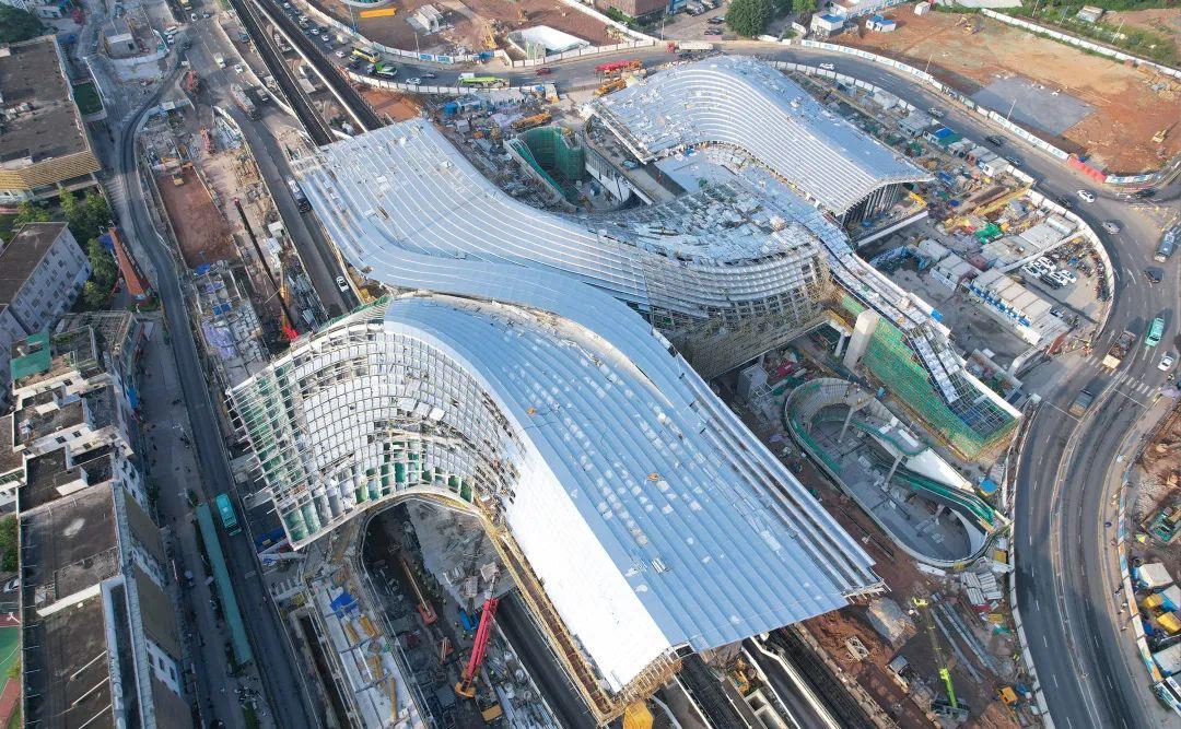 大运综合交通枢纽是深圳东部唯一汇集地铁、城际铁路、公交于一体的大型综合交通枢纽,未来将实现3、14、16号线和深大城际的四线换乘。目前,大运枢纽主体结构已全部完成,钢结构施工完成100%,安装装修工程完成86%,预计年内实现14/16号线部分运营及与3号线站内换乘功能,建成投用后,对完善深圳东部交通、实现粤港澳大湾区互联互通具有重要意义。