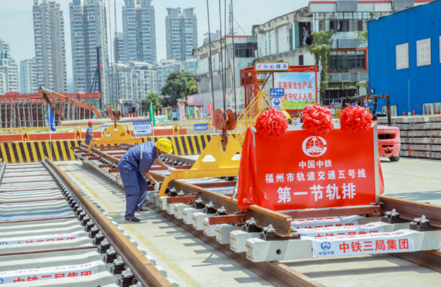 近日,福州地铁5号线1标第一节轨排顺利首铺,标志着福州地铁5号线1标正式拉开铺轨序幕。福州地铁5号线1标轨道工程(含出入场线),起于荆溪新城站,止于福湾路站(不含)。途径农林大学站、洪塘路站、金林路站、金华路站、金山站等10个站点,共设3个铺轨基地,8个铺轨作业面,线路全长31.811km,全部为地下线。