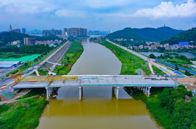肇庆新兴江一桥是中铁西江国际未来科技城PPP项目子项市政配套工程,是连接西江两岸的重要过江桥梁通道,同时也是2020年广东省重点建设工程,大桥位于肇庆市高要区湖西路东段,沿湖西路延长线跨新兴江,全桥长184.56米,建成后,将进一步完善肇庆高要城区的跨江通道布局,提升市民交通出行品质,助力和支撑西江国际未来科技城的建设发挥着重要作用。
