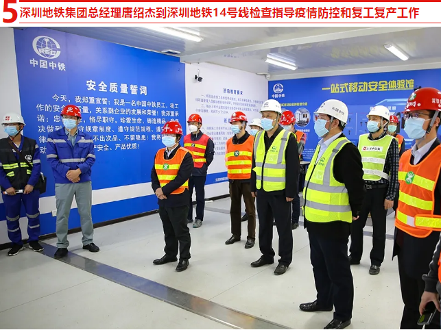 2月20日,深圳地铁集团总经理唐绍杰到中国中铁地铁14号线坳背站和布石区间竖井两个项目检查指导疫情防控和复工复产工作,详细了解两个项目疫情防控措施落实,防疫物资储备,人员返岗及复工安全检查等情况。