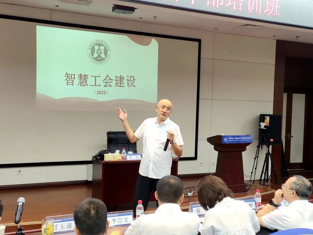 郑黎以“融入中心 服务大局 充分发挥工会组织教育建设职能作用”为主题,系统讲授了劳动竞赛、劳模选树、劳模创新工作室、新时代产改、职工兴趣协会等工会生产宣教工作的内容与要求。