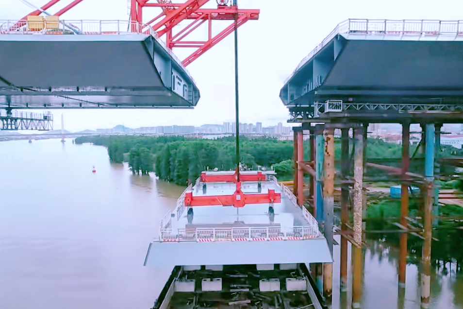 近日,广东省中山市港口镇境内,南中项目桥位现场,所有职工紧张而有序地忙碌着;随着哨声响起,大桥中山侧最后一段钢箱梁缓缓起吊,精准就位,至此,由中铁工业旗下中铁宝桥承制的南中横门西特大桥钢箱梁中山侧顺利合龙。